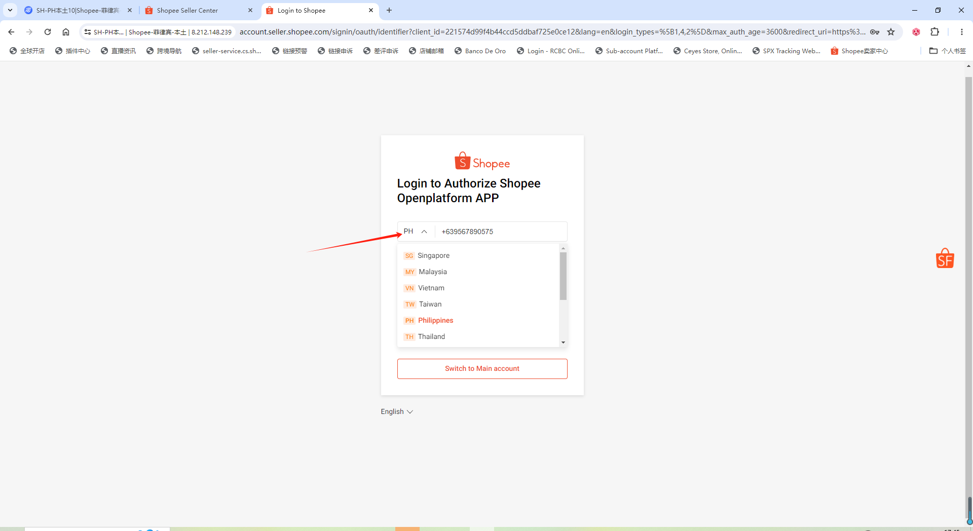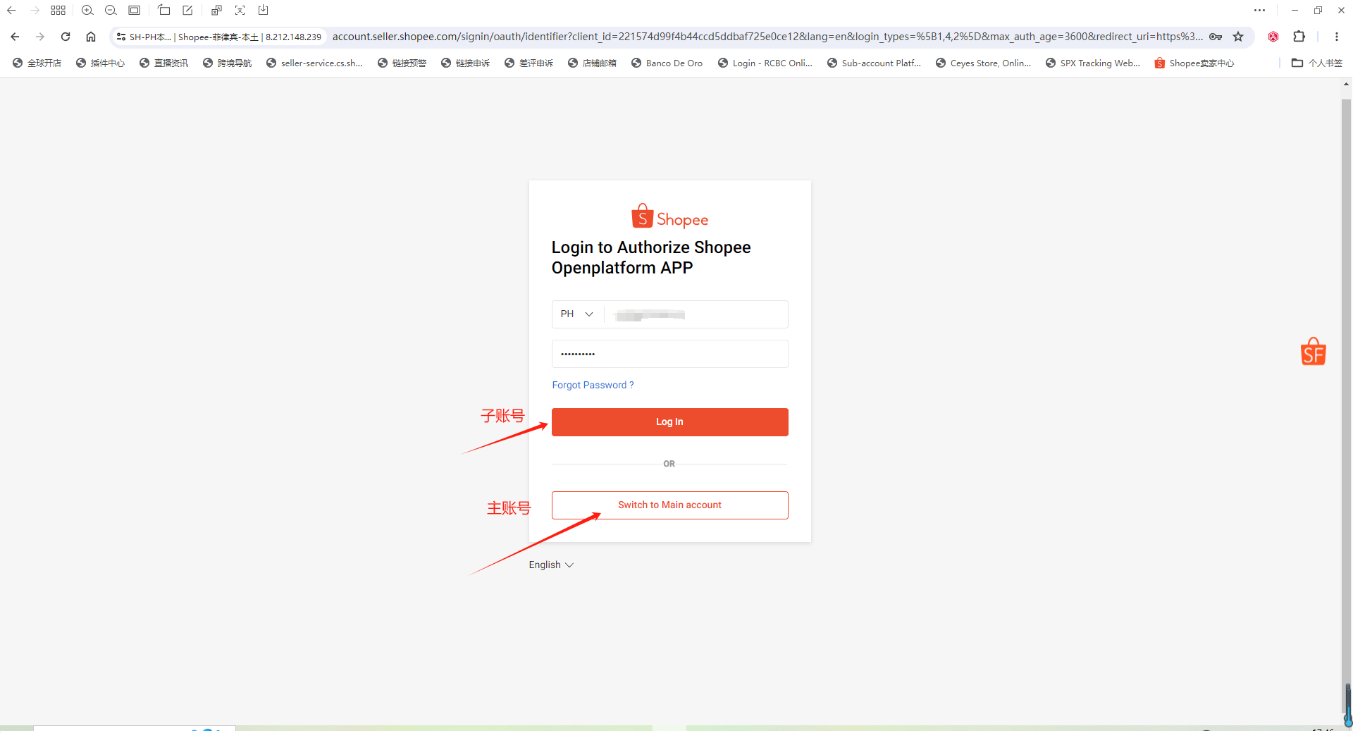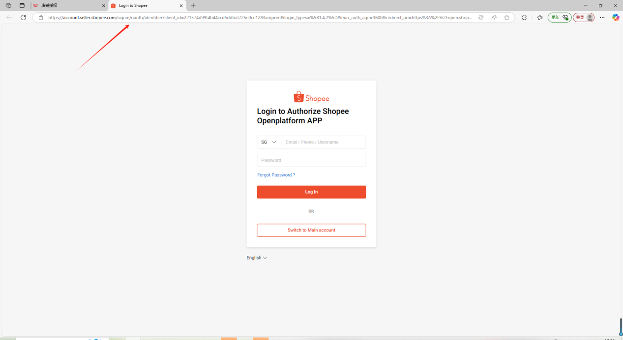 如果是子账号点击“Login in”,主账号则点击“Switch to Shop Account”: